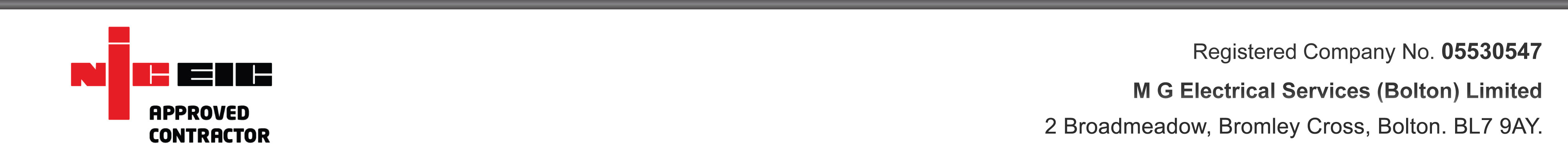 MG Electrical Services (Bolton) Ltd is a fully approved NICEIC / Part P electrical contractor serving both Domestic Commercial and Industrial sectors.